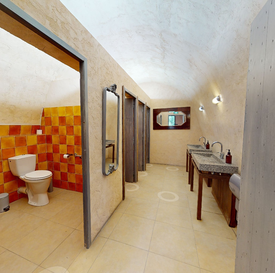 Un espace couvert en plein air, pour prolonger les moments de partage, quelles que soient les conditions. Voûtée en pierre et protégée des aléas climatiques, cette terrasse allie cachet architectural et praticité. Son sol en béton ciré assure confort et stabilité pour accueillir un cocktail, une animation ou un espace lounge à l’abri.